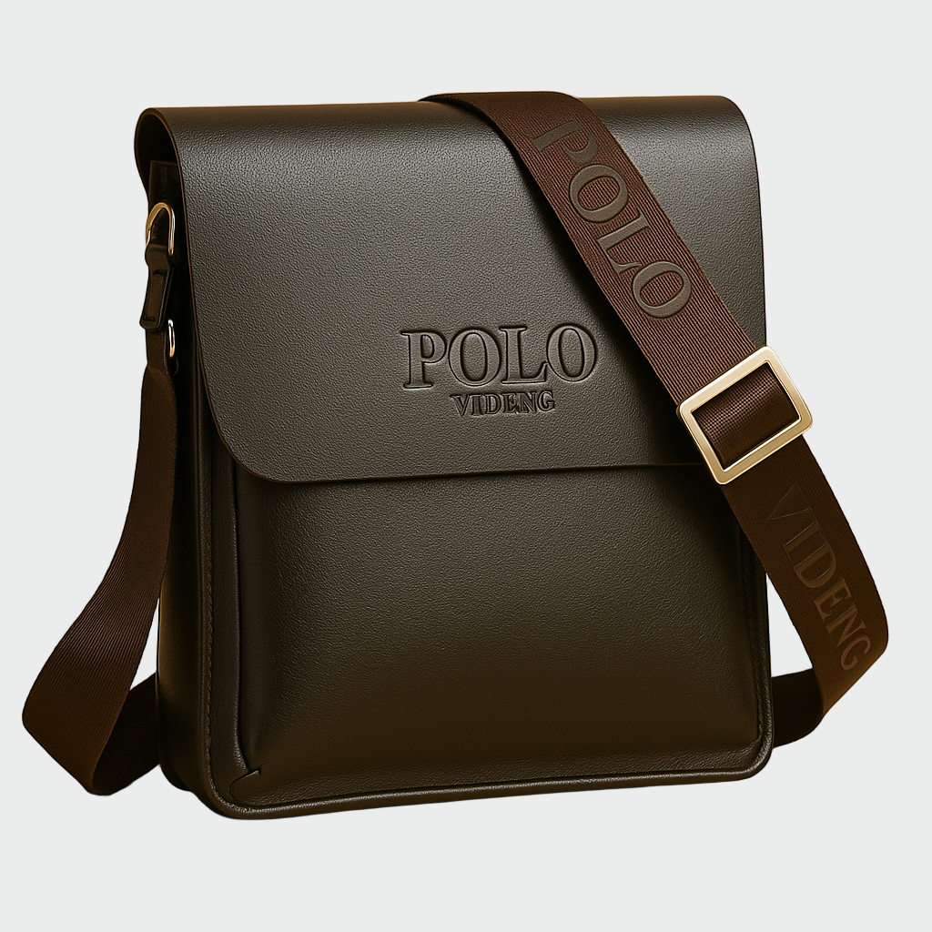 Stylová pánská taška přes rameno z vysoce kvalitní syntetické kůže v tmavě hnědé barvě. Její minimalistický design s reliéfním logem “POLO VIDENG” ji činí ideální pro business i casual vzhledy. Disponuje nastavitelným ramenním popruhem s elegantní kovovou sponou, která nabízí pohodlí a styl v každodenním životě.