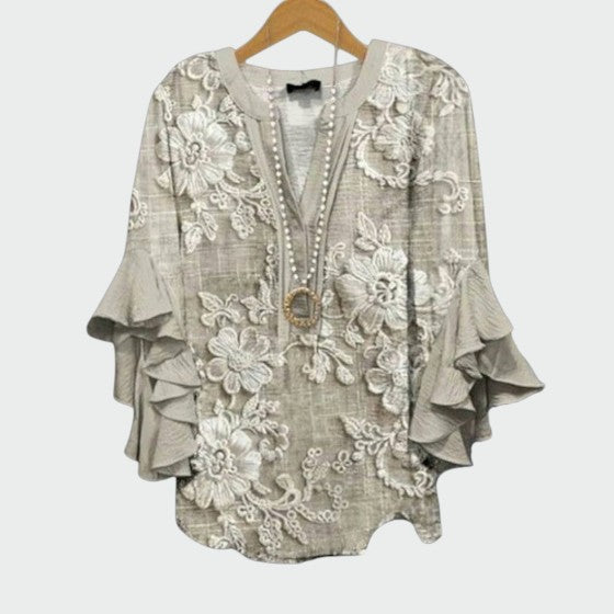 Alma – Halenka s V-výstřihem a krajkovým lemem