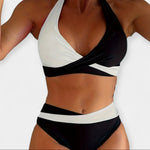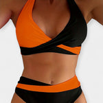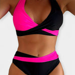 Tento sexy dvoudílný bikini zaujme svým jednoduchým střihem a kříženým detailem u výstřihu. Diskrétně zdůrazňuje ženskost, ideální pro elegantní vystoupení na pláži nebo vaše letní výlety.