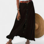 Vzdušná a elegantní, tato sukně vyzařuje diskrétní ženskost a nabízí flexibilitu pro jakoukoli příležitost. S lehkým průhledným materiálem a knoflíky vpředu ji lze nosit od rána do večera s správným stylingem.