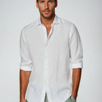 Čistě bílá barva dodává této lněné košili svěží, nadčasový vzhled, který je vhodný pro jakoukoli příležitost. Kombinujte ji s lehkými kalhotami nebo chinos pro letní a rafinovaný vzhled, nebo ji noste s tmavými kalhotami pro klasický a elegantní outfit. Díky nadčasovému designu je tato košile nezbytným kouskem v každém šatníku.