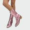 Dámské **cowboyské boty v metalické růžové** barvě, které upoutají pozornost svou jedinečnou charakteristikou. Mají **bohatě vyšívaný design** a boční zapínání na zip pro snadné obutí, zatímco nízký dřevěný podpatek poskytuje komfort a styl v každém kroku. Ideální pro odvážné street-style looky a módní vystoupení, která se vyjímají.
