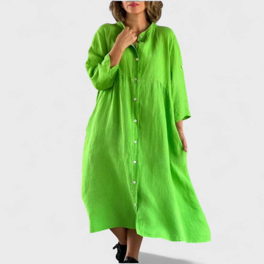 Isa - Bavlněno-lenová Košilová Šaty