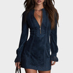 Rachel — Luxusní semišové mini šaty s krajkovými detaily byly navrženy pro ženy, které chtějí vyniknout bez jediného slova. Hebký semiš dokonale obepíná siluetu, zatímco precizně propracovaná krajka podtrhuje ženskost a jemnost. Hluboký výstřih se zipem dodává šatům smyslnost, zatímco dlouhé rukávy udržují celkový vzhled vkusný a elegantní. Ideální na večerní akce, romantické večeře i speciální příležitosti, kde chcete zanechat nezapomenutelný dojem.