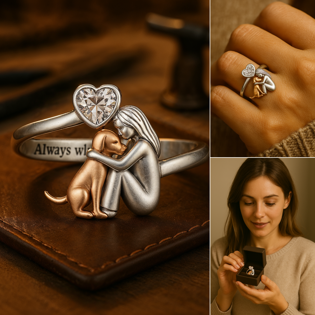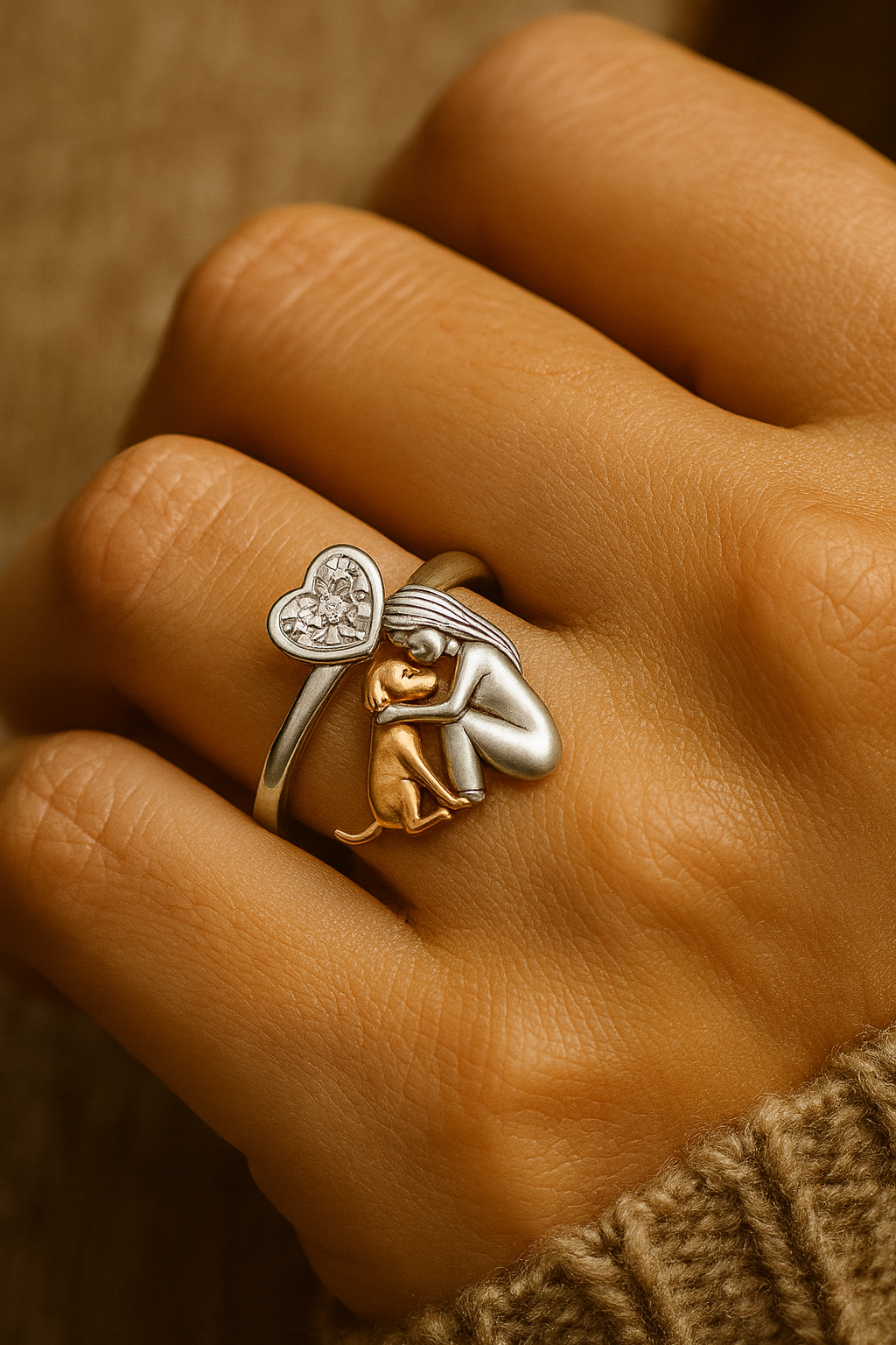 Tento dojemný prsten pro psy ze stříbra 925 s kubickými zirkony nese nápis „Always in My Heart“ (Navždy v mém srdci) a zobrazuje něžné objetí mezi dívkou a jejím psem. Je to krásný symbol nerozlučného pouta mezi lidmi a jejich chlupatými společníky. Design kombinuje jemný zirkon ve tvaru srdce s jemně detailní siluetou dívky, která láskyplně objímá svého psa.
