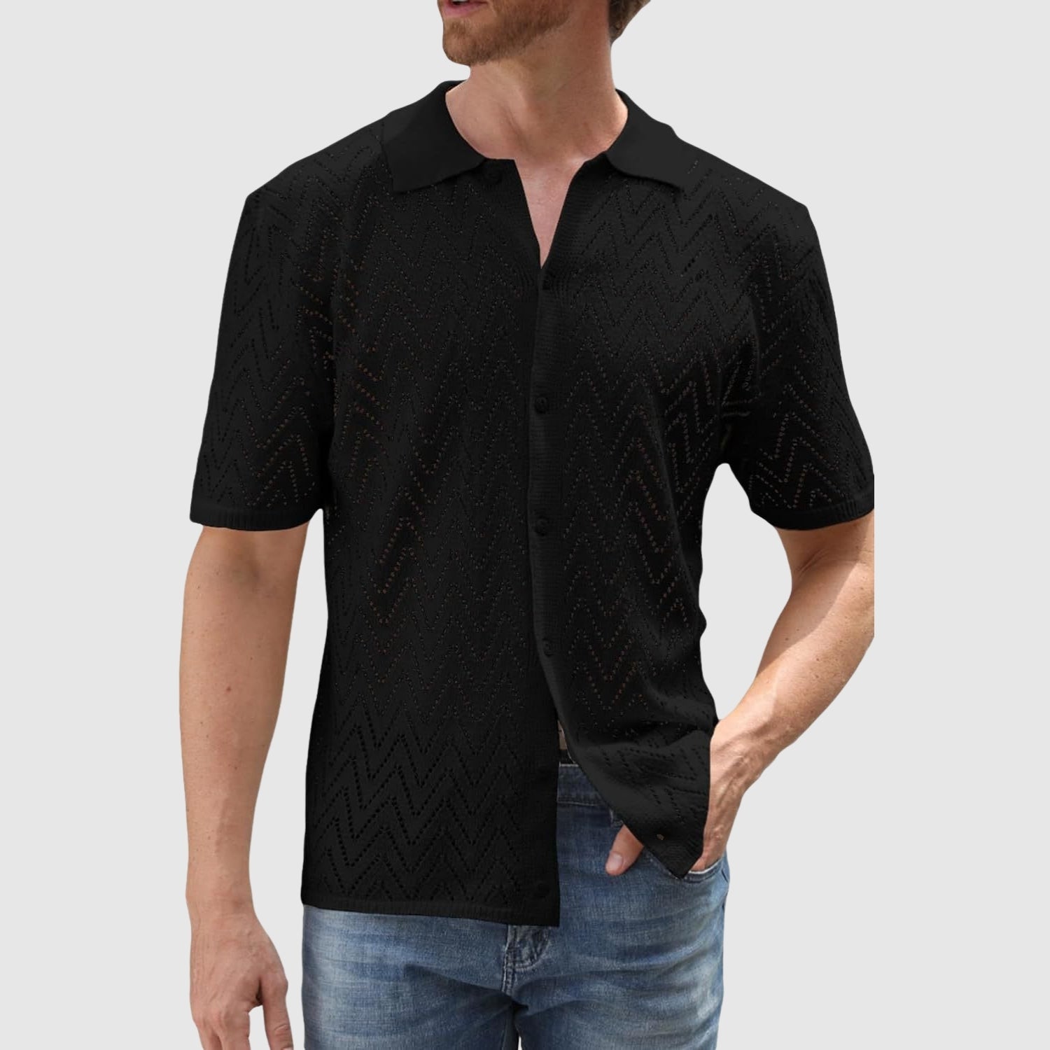 Odvažte se nosit oděv, který kombinuje svěžest, texturu a moderní styl. Tato pletená košile se zigzagovým vzorem dodává moderní a sofistikovaný nádech, aniž by se vzdávala pohodlí. Díky lehké a prodyšné tkanině je ideální pro každou neformální příležitost nebo letní událost.