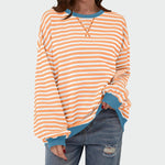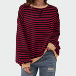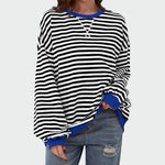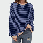 Alma – Casual Dlouhý Rukáv Pruhovaný Svetřík s Kulatým Výstřihem
