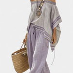 Bambusový top s pruhy, s odhalenými rameny a širokými kalhotami pro elegantní a svěží styl