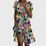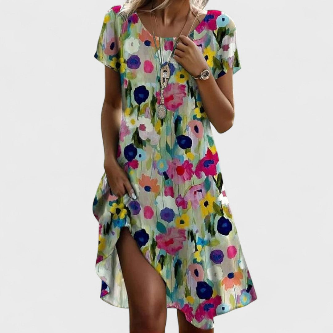 Šaty Eva potěší svým nádherným květinovým potiskem a jemným materiálem, který vypadá elegantně a zároveň je maximálně pohodlný. Uvolněný střih s definovaným pasem nabízí přirozený pocit svobody a ženskosti. Skvělá volba na jarní piknik, kávu s přáteli i romantické letní večery.