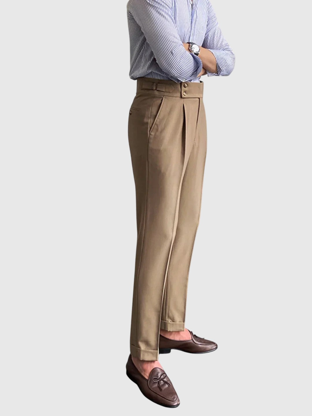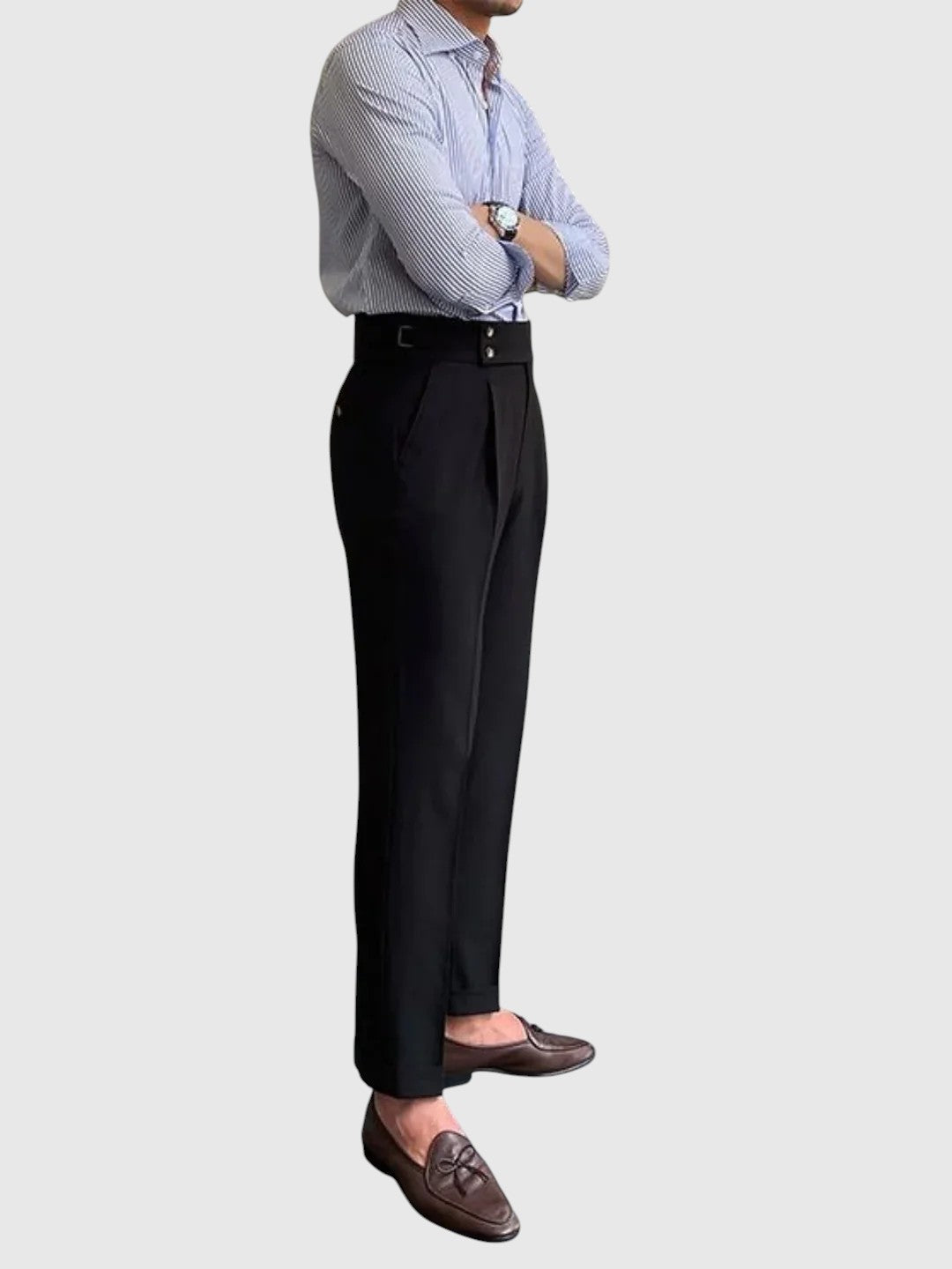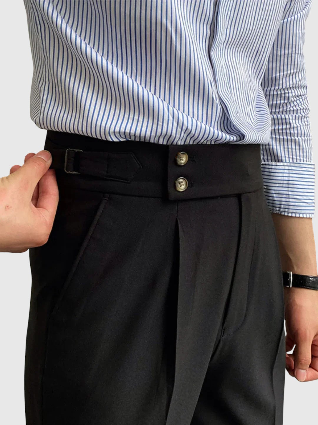 Kalhoty Moritz Vintage byly navrženy pro muže, kteří ocení styl inspirovaný dědictvím s rafinovaným nádechem. Vyrobeny z vysoce kvalitní tkaniny, nabízejí pohodlný, ale strukturovaný střih - ideální pro elegantní ležérní vzhled, sofistikované každodenní oblečení nebo soupravy inspirované vintage stylem.