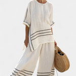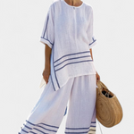 Overal Daisy nabízí dokonalou rovnováhu mezi pohodlím a středomořským stylem. Vyrobený z lehké směsi bavlny a lnu, jeho široká silueta s jemnými otevřenými částmi a dekorativními pruhy vyzařuje bezstarostnou svěžest.
