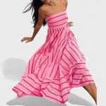 Šaty Rosa oslní svým ombré přechodem v odstínech připomínajících večerní oblohu — od zlatavé přes lososovou až po jemně fialovou. Krásně splývavý materiál dodává šatům pohyb i eleganci, jako kdyby tančily na letním večerním vánek. Ideální volbou pro romantické večeře, plážové večery nebo stylové letní akce.