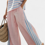 Sada z bambusového lnu Daisy Středomořské v jemně růžové s elegantními modrými pruhy
