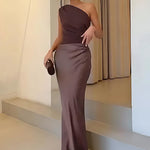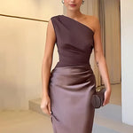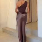 Saténové maxi šaty Sophia s jedním ramenem zachycují podstatu rafinované elegance s moderním nádechem. Jejich elegantní asymetrický design a splývavý saténový povrch vytvářejí dokonalou siluetu, která vyzařuje sebevědomí a šarm. Tyto lehké a půvabné šaty jsou ideální na večerní párty, svatby nebo jakékoli jiné příležitosti, kde chcete zanechat trvalý dojem. Přizpůsobený střih zajišťuje pohodlí a eleganci, zatímco moderní střih zaručuje výrazný vzhled.