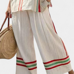 Souprava Mediterranean Daisy z bambusového lnu s elegantními červenými a zelenými pruhy