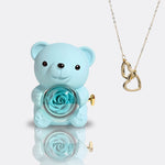 Medvěd s věčnou růží a personalizovaným náhrdelníkem